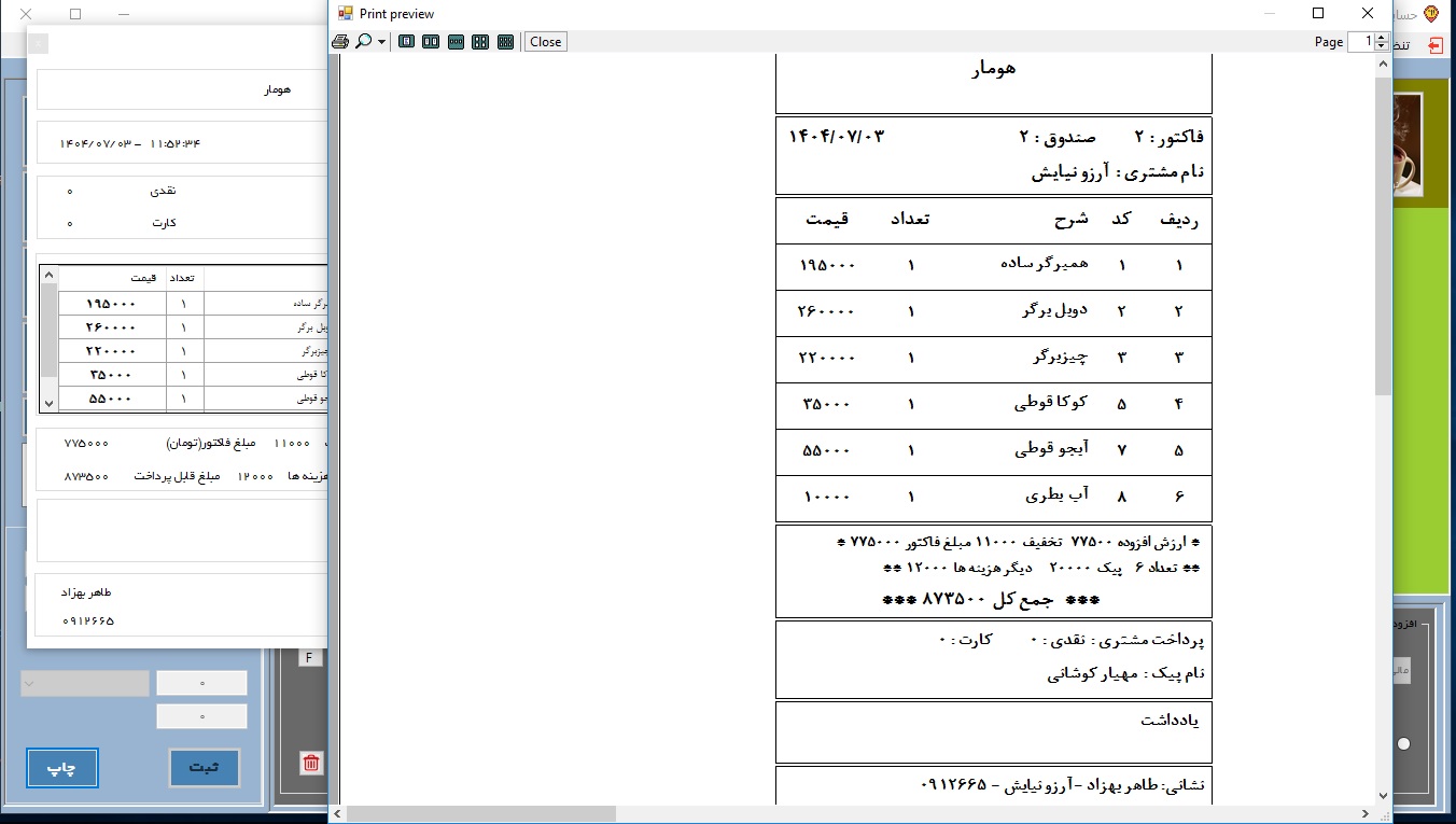 نرم افزار حسابداری رستوران رایگان با همه قابلیت های برنامه گواهی دار جهت تست و بررسی نرم افزار حسابداری